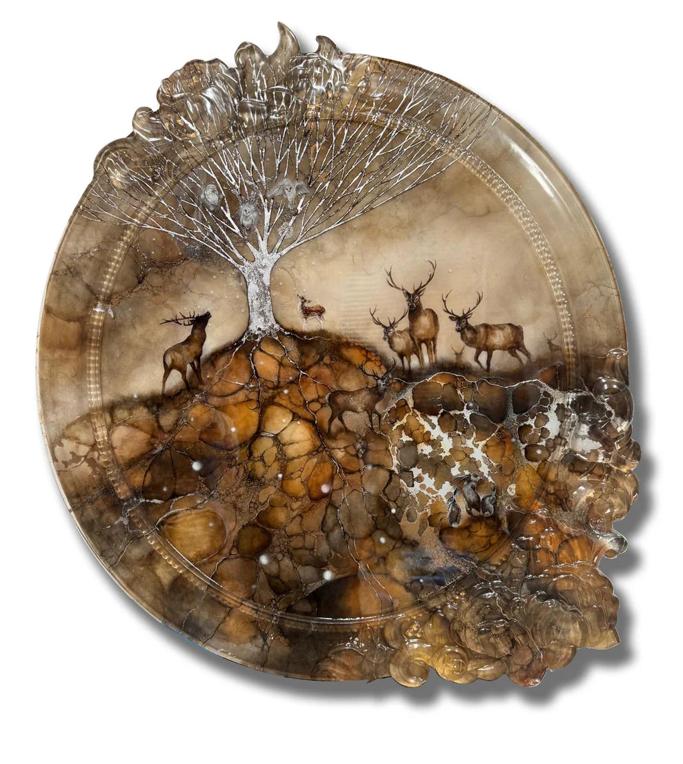 Medium: Unique Resin Framed Original. Mixed media on board finished with a gloss resin finish. This is strung ready to be presented unframed.