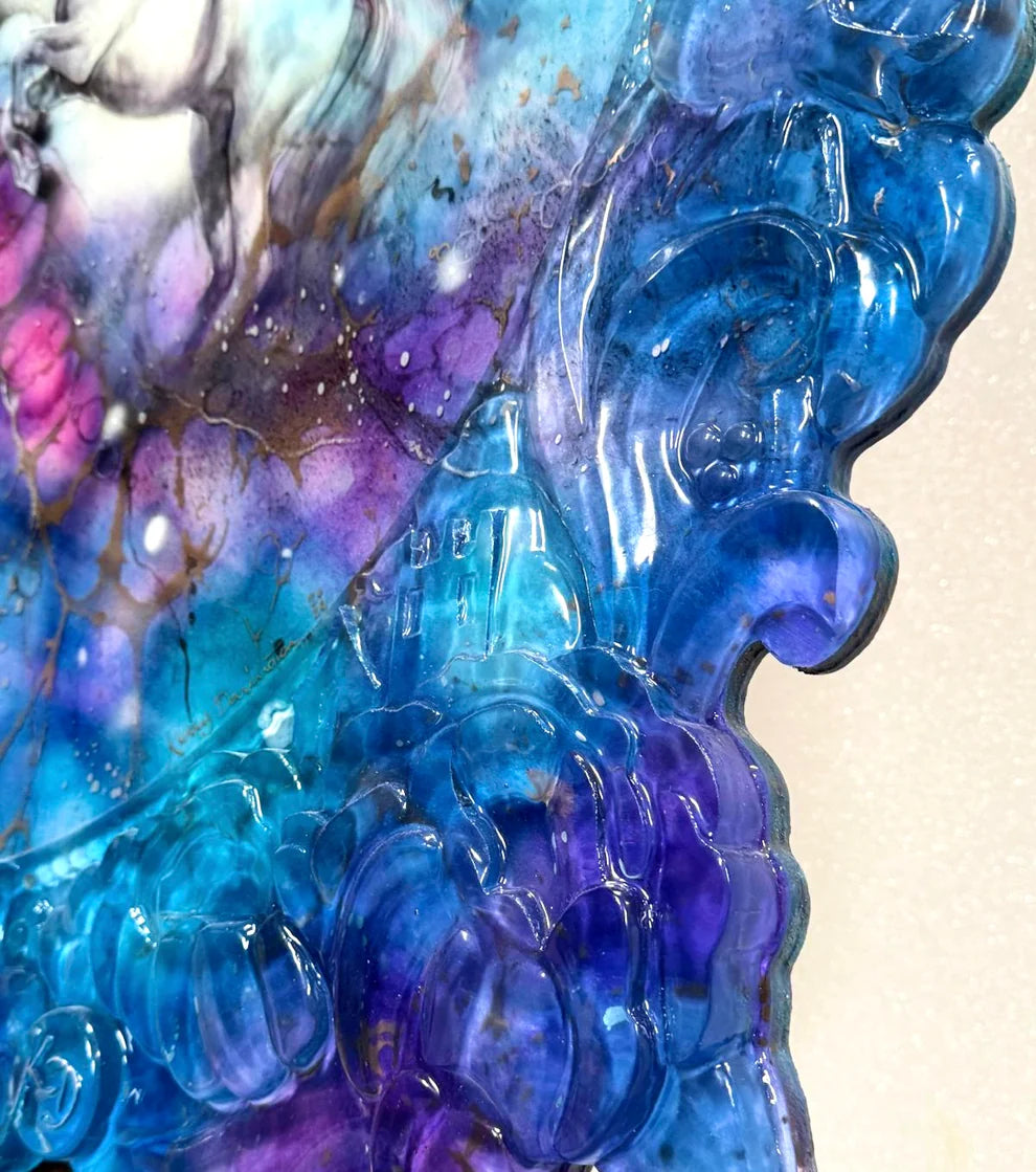 Medium: Unique Resin Framed Original. Mixed media on board finished with a gloss resin finish. This is strung ready to be presented unframed.
